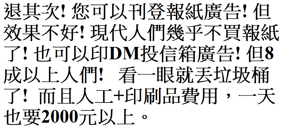 只要您願意每天撥出20-100元的廣告預算! 我們可以幫得上您的忙!